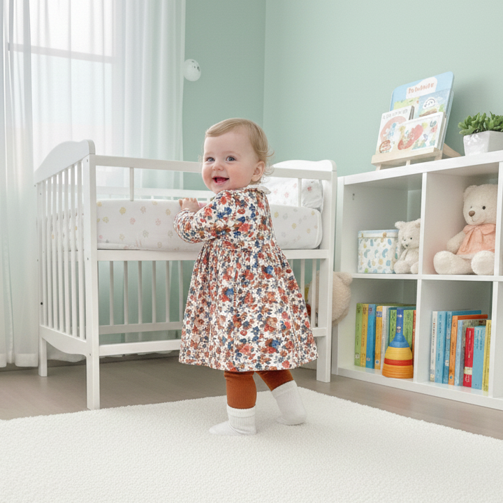 • A relaxed, flowy silhouette that allows for easy movement, whether she's crawling, sitting, or playing.