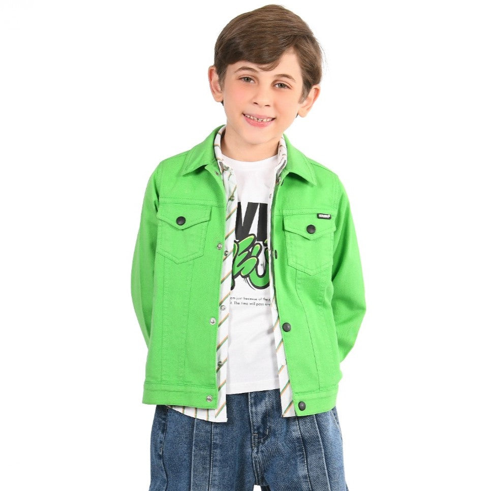 • A high-energy denim-style jacket that adds a fresh, modern pop of color to his wardrobe.