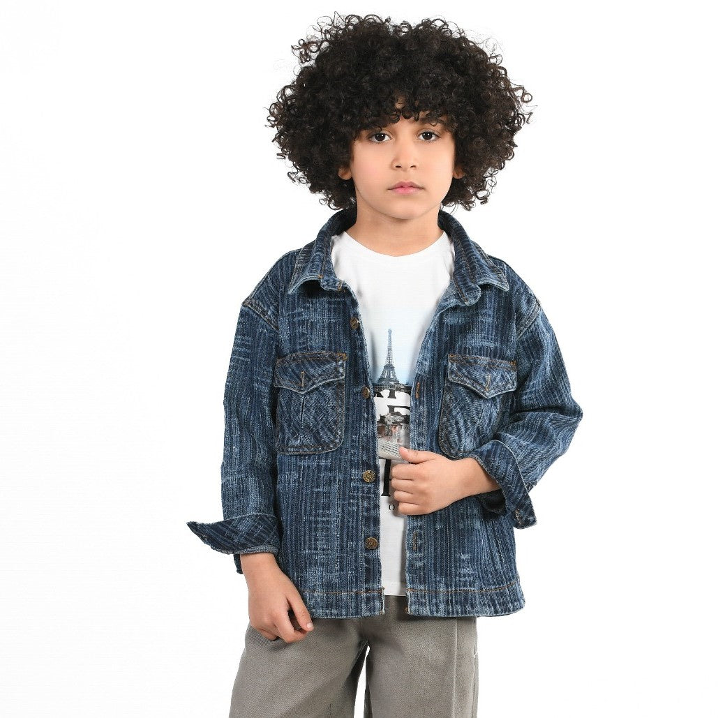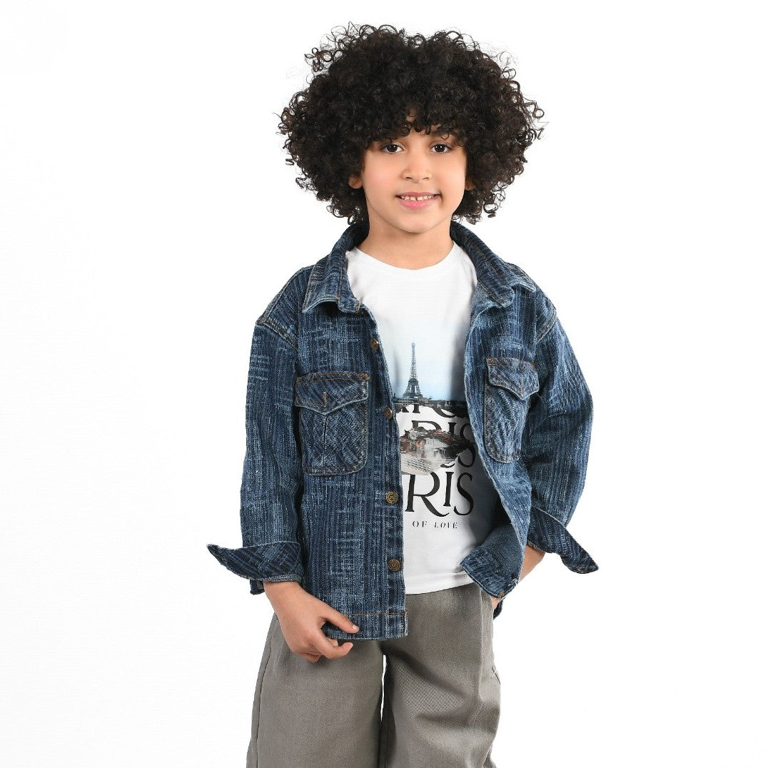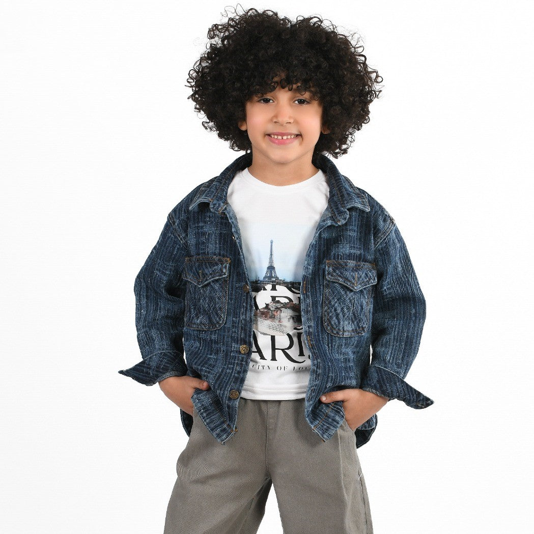 • A versatile two-piece outfit featuring a textured denim-style shirt and a printed "Paris" tee. Comfortable, durable, and effortlessly cool—your little one’s new favorite go-to look!