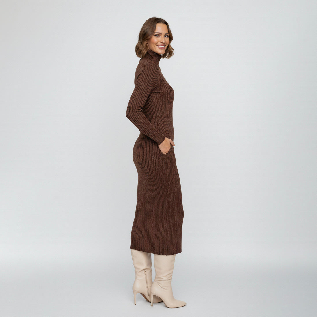 Ribbed Knit Turtleneck Midi Dress